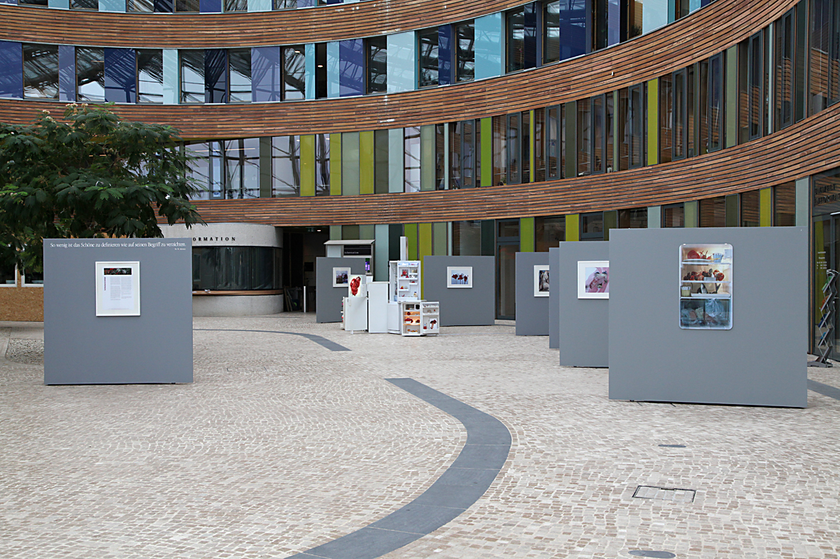 Christina Paetsch studierte Kunstgeschichte und anschließend Freie Kunst an der Hochschule der Künste Berlin. Sie lebt und arbeitet in Berlin. Für das Umweltbundesamt hat sie die Installation „Kühlturm“ kreiert, bestehend aus Kühlschränken, die mit Fotos, Videos und Objekten „befüllt“ sind. Darüber hinaus werden Fotocollagen und Fotografien aus unterschiedlichen Serien gezeigt – u. a. vom Berliner Gemüsegroßmarkt. Ergänzend zur Ausstellung findet eine essbare Aktion mit regionalem Gemüse statt. Das Gemüse für die Kochperformance stammt aus der Urbanen Farm Dessau, einer Initiative der Stiftung Bauhaus zur Bewirtschaftung von Stadtumbaubrachen. Mit dem Anbau seltener Kulturpflanzen, wie etwa blauen Kartoffeln, wird ein Beitrag zur Erhöhung der biologischen Vielfalt im Dessauer Landschaftszug geleistet.