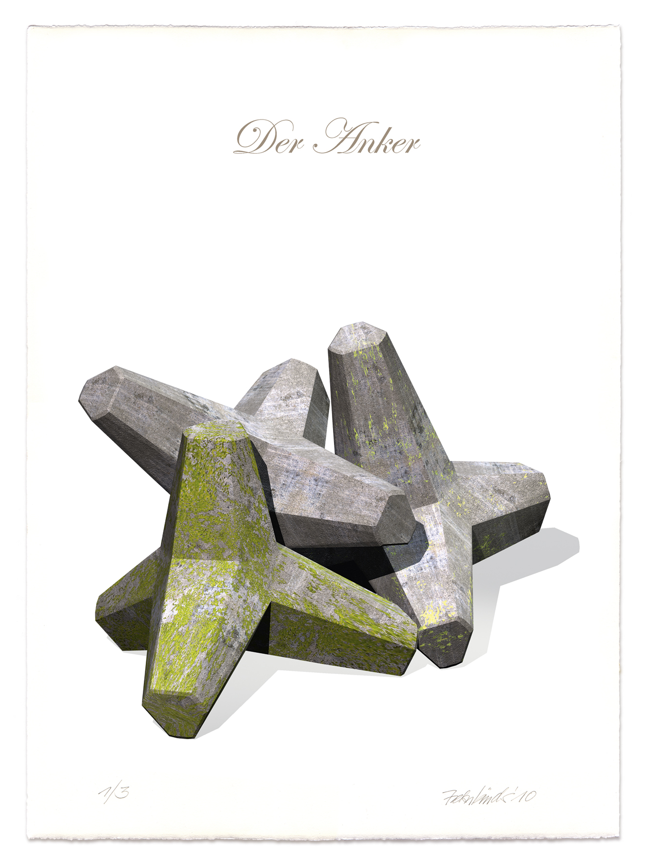 Stefan Fahrnländers fotorealistisch anmutende, am Computer generierte Bilder üben eine verstörende Wirkung auf den Betrachter aus. In seinem Zyklus Seezeichen wirft er ähnlich wie die Klimamodellierer mit Hilfe von Computer und Algorithmen einen Blick auf eine nicht allzu ferne Zukunft: Seine fantastischen Gebilde sind vielseitig interpretierbar – als Überlebenskapseln, Warnbojen oder Positionsmarken im Uferlosen, die Orte einer Vergangenheit markieren, die längst untergegangen sind. Der an der renommierten Kunstakademie Dresden ausgebildete Fahrnländer erhielt Stipendien des Berliner Senats, des Siemens Art Programm und der Philip Morris Stiftung. Jüngst war er auf der 7. Berlin Biennale für zeitgenössische Kunst mit Arbeiten vertreten.