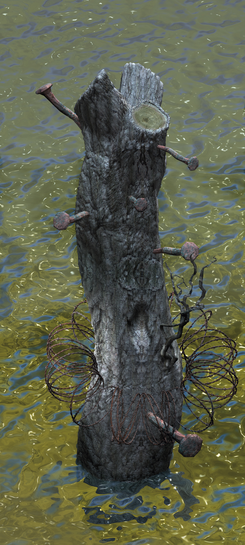 Herr Fahrnländer, verrottete Baumstümpfe und Warnbojen. In Seezeichen zeigen Sie ein Katastrophenszenario von biblischem Ausmaß. Was war das Ausgangsmaterial für diese Arbeit?
