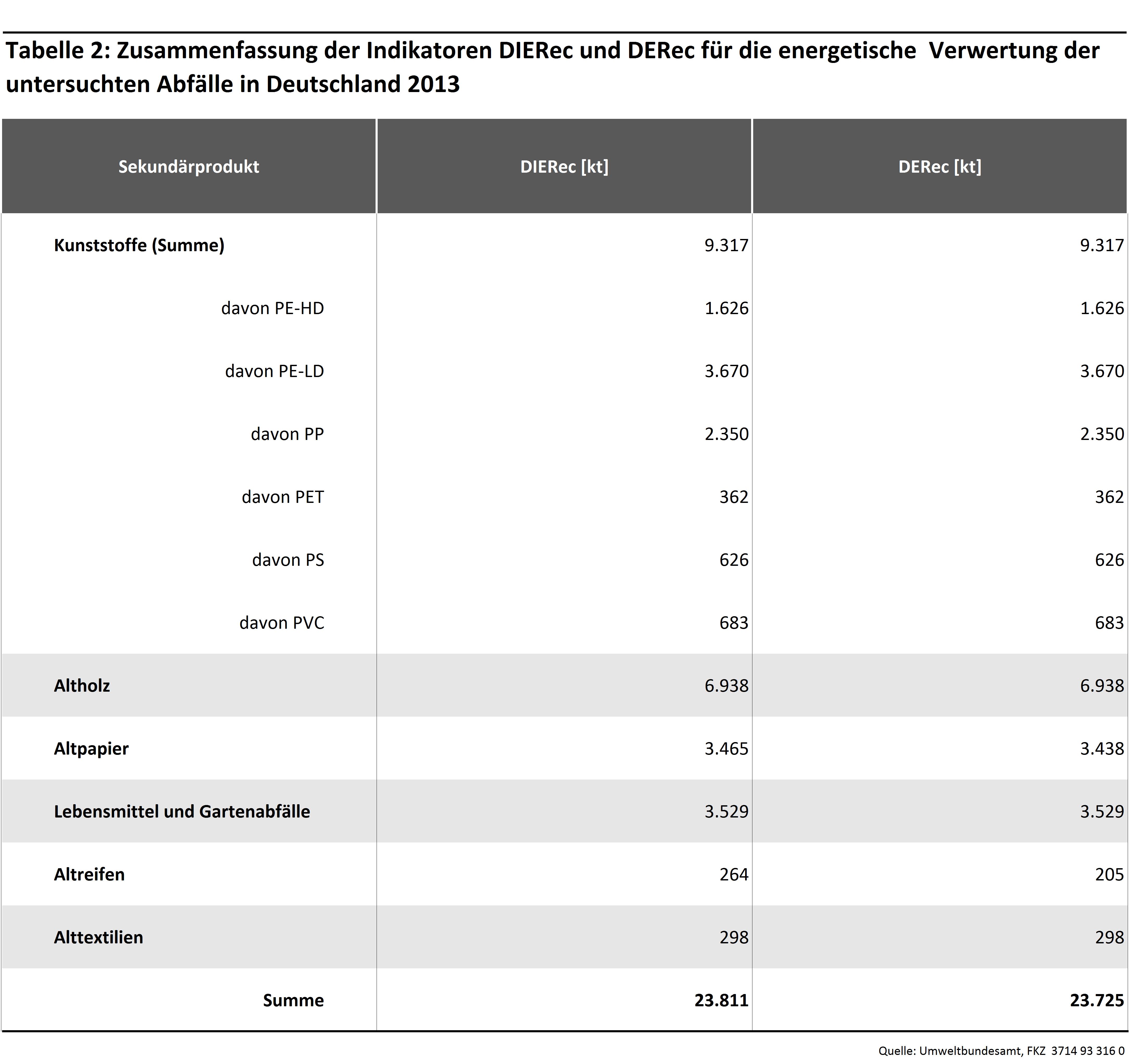 Absolute materialwirtschaftliche Verwertungseffekte anhand von DIERec und DERec in Deutschland 2013