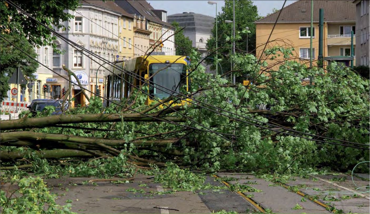 Als die Stadt Essen im Juni 2014 von dem Orkan „Ela“ getroffen wurde, sind große Teile des städtischen Baumbestandes beschädigt worden. Das öffentliche Leben kam durch blockierte Straßen und Schienen teilweise zum Erliegen. Als Konsequenz riefen die Stadt Essen und die Uni Dortmund das Projekt „BaumAdapt“ ins Leben. Ziel war es zu ermitteln, wie sich der urbane Baumbestand in den kommenden Jahren verändern muss, um auf der einen Seite widerstandsfähig gegen extreme Windereignisse zu sein und auf der anderen Seite seine Ökosystemleistungen optimal aufrecht erhalten zu können. Im Ergebnis des Ende 2020 abgeschlossenen Projekets stehen Handlungsempfehlungen, wie das Stadtbaummanagement im Hinblick auf mehr Resilienz geplant, unterhalten und weiterentwickelt werden kann. Diese Empfehlungen wurden unter anderem aus der Simulation von Verkehrsunterbrechungen von Kritischen Infrastrukturen sowie eines Vergleichs des Baumbestandes vor und nach dem Sturmereignis gewonnen. Auch das Verhalten von Bäumen im Sturmereignis sowie die Ökosystemleistung von Bäumen wurde modelliert. Auf diese Weise konnten zum Beispiel Aussagen über relevante und schützenswerte Verbindungen und Knotenpunkte im Verkehr sowie potenzielle Baumschädigungen durch Sturmereignisse getroffen werden. Viele der Handlungsempfehlungen wurden während der Projektlaufzeit in Pilotprojekten bereits umgesetzt.
