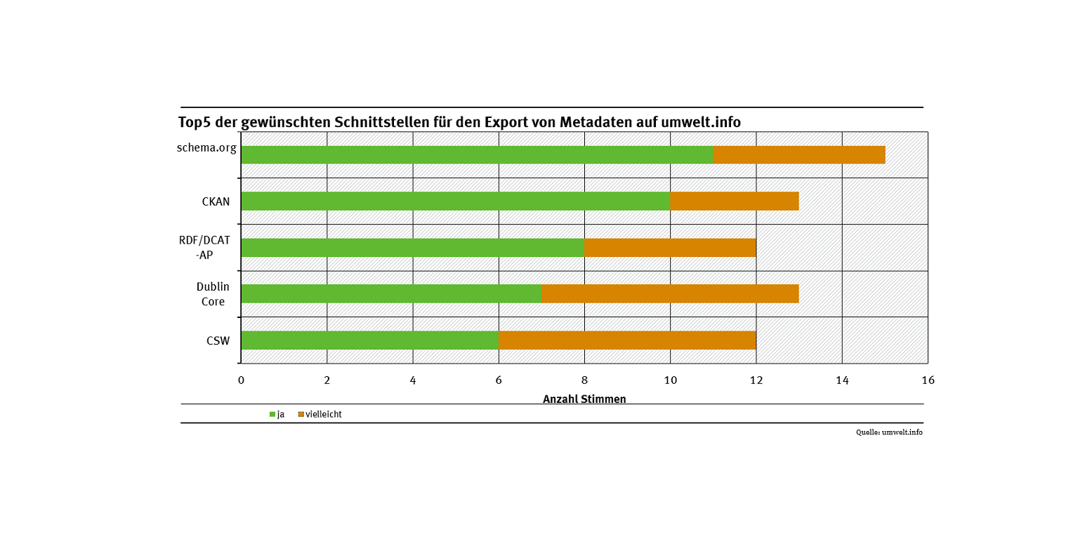 Ergebnis der Umfrage zum gewünschten Metadatenstandard für den Export auf umwelt.info.