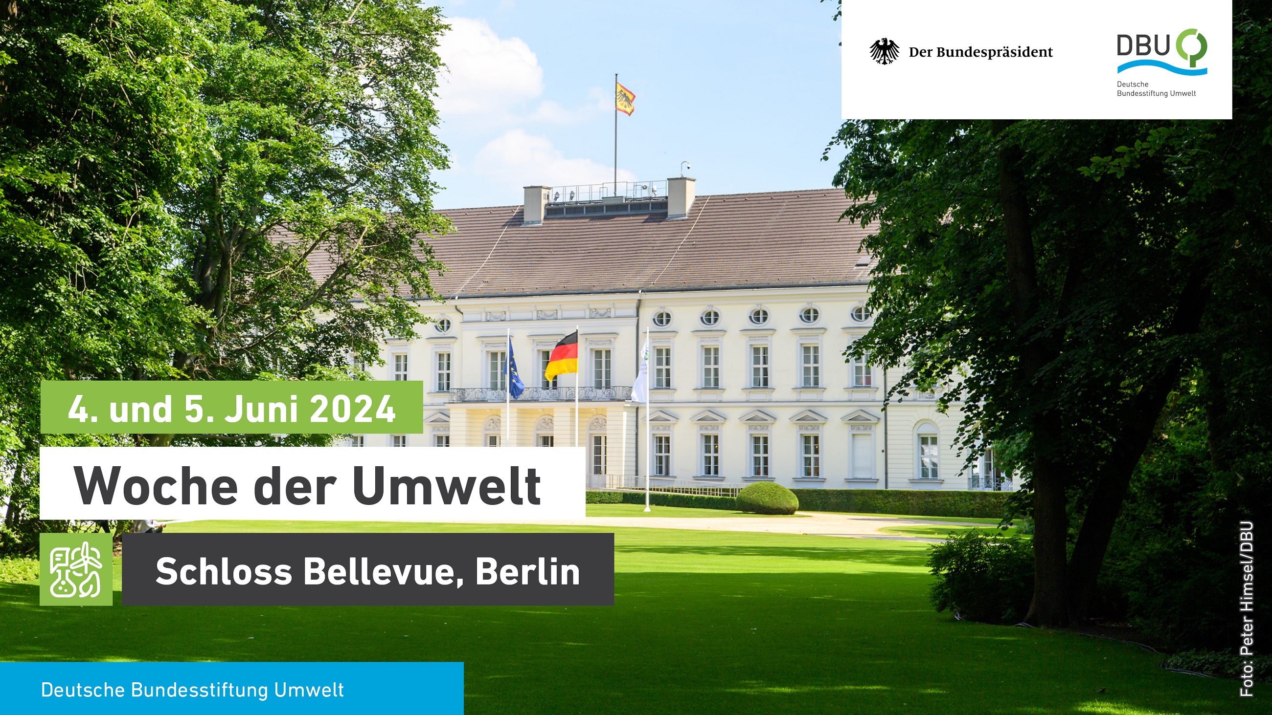 Am 4. und 5. Juni lädt Bundespräsident Frank-Walter Steinmeiergemeinsam mit der Deutschen Bundesstiftung Umwelt (DBU) zur „Woche der Umwelt“ ein – in den Park von Schloss Bellevue.