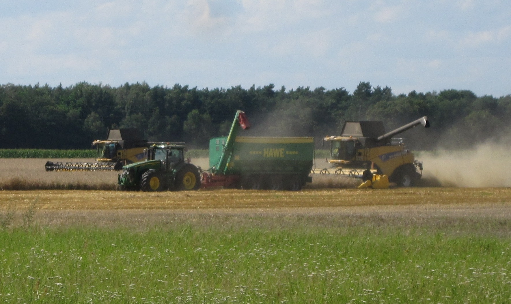 Traktoren bei der Ernte auf einem Feld
