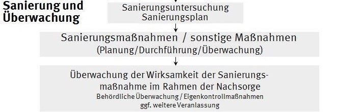 Nachsorgemaßnahmen werden immer dann erforderlich, wenn nach der Sanierung eine langfristige Instandhaltung der Sanierungsbauwerke und -anlagen und/ oder eine Überwachung der Wirkungspfade notwendig ist. Grund hierfür können verbliebene Schadstoffe sein.