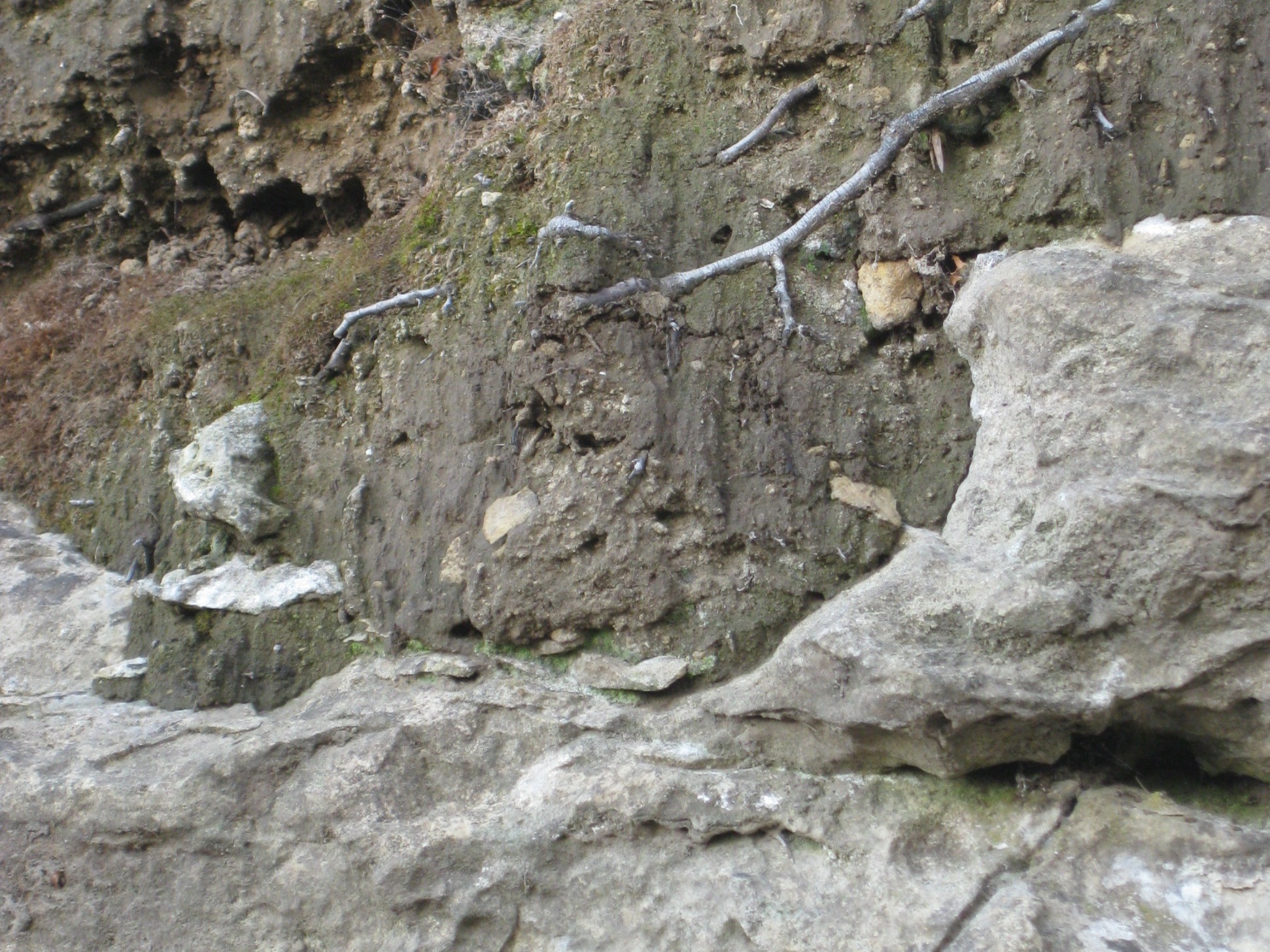 Der Druck von wachsenden Wurzeln vermag ebenfalls Gestein zu zerkleinern. Es kommt zur regelrechten Wurzelsprengung, die auch mal Fuß- und Radwege aufbrechen lässt.