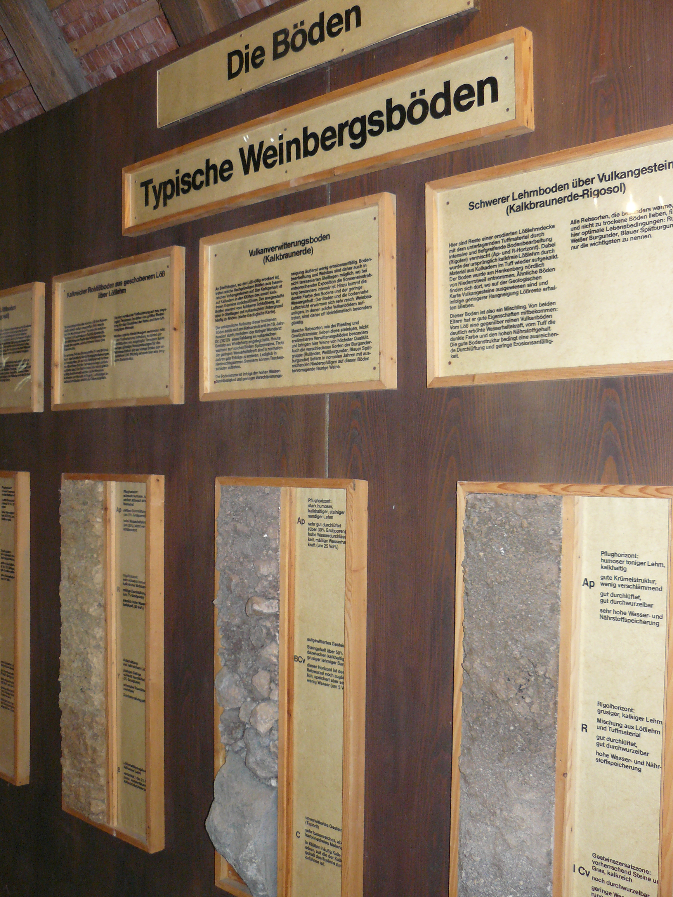 Ein Themenbereich des Kaiserstühler Weinbaumuseums widmet sich den typischen Weinbergsböden des Kaiserstuhls. Die vorgestellten und gut erläuterten Bodenexponate wurden als Kastenprofile präpariert.