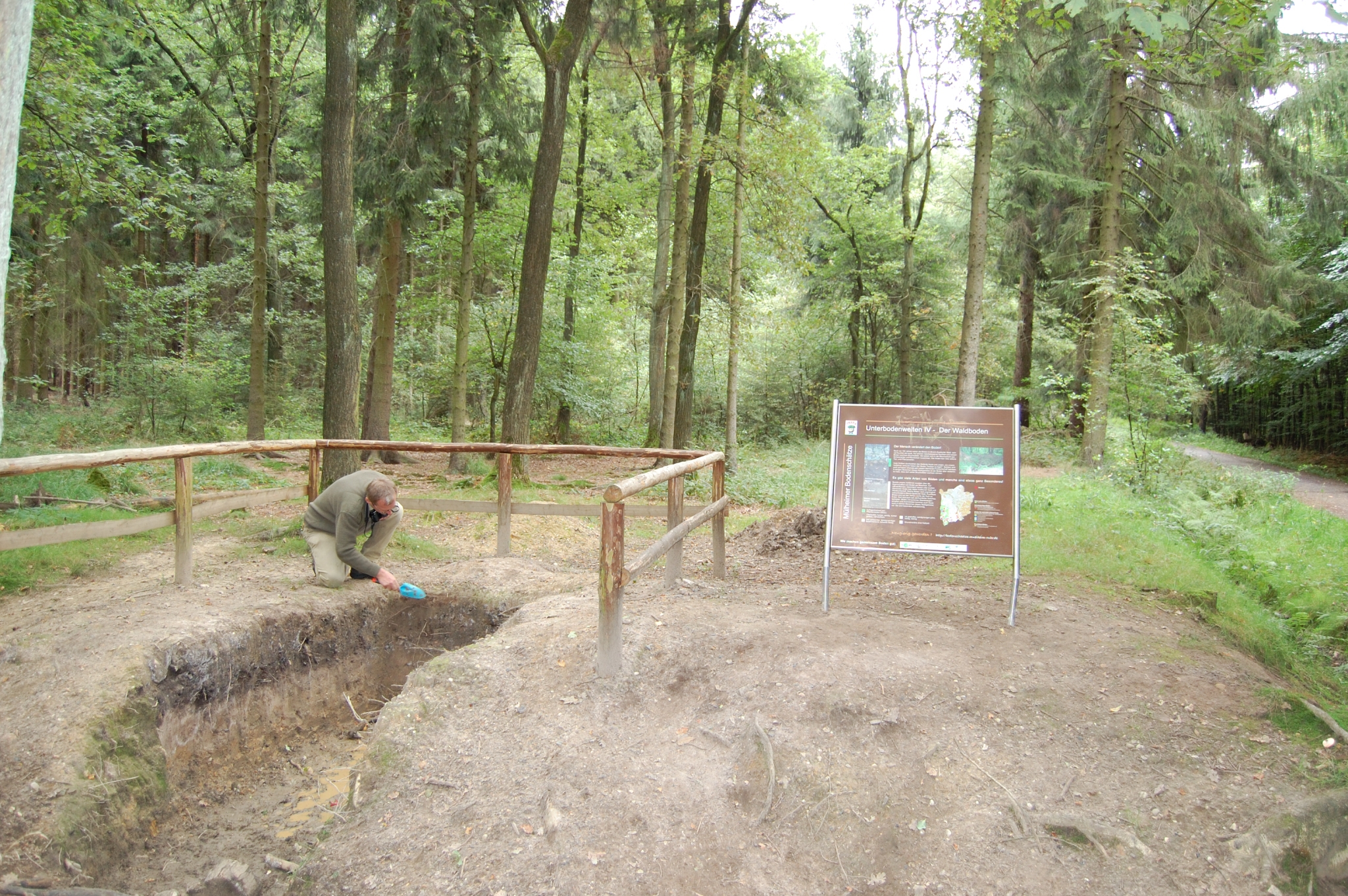 Anhand von 10 Stationen werden interessierten Besuchern die Böden mithilfe von Informationstafeln, Profilen und Exponaten anschaulich dargestellt.
