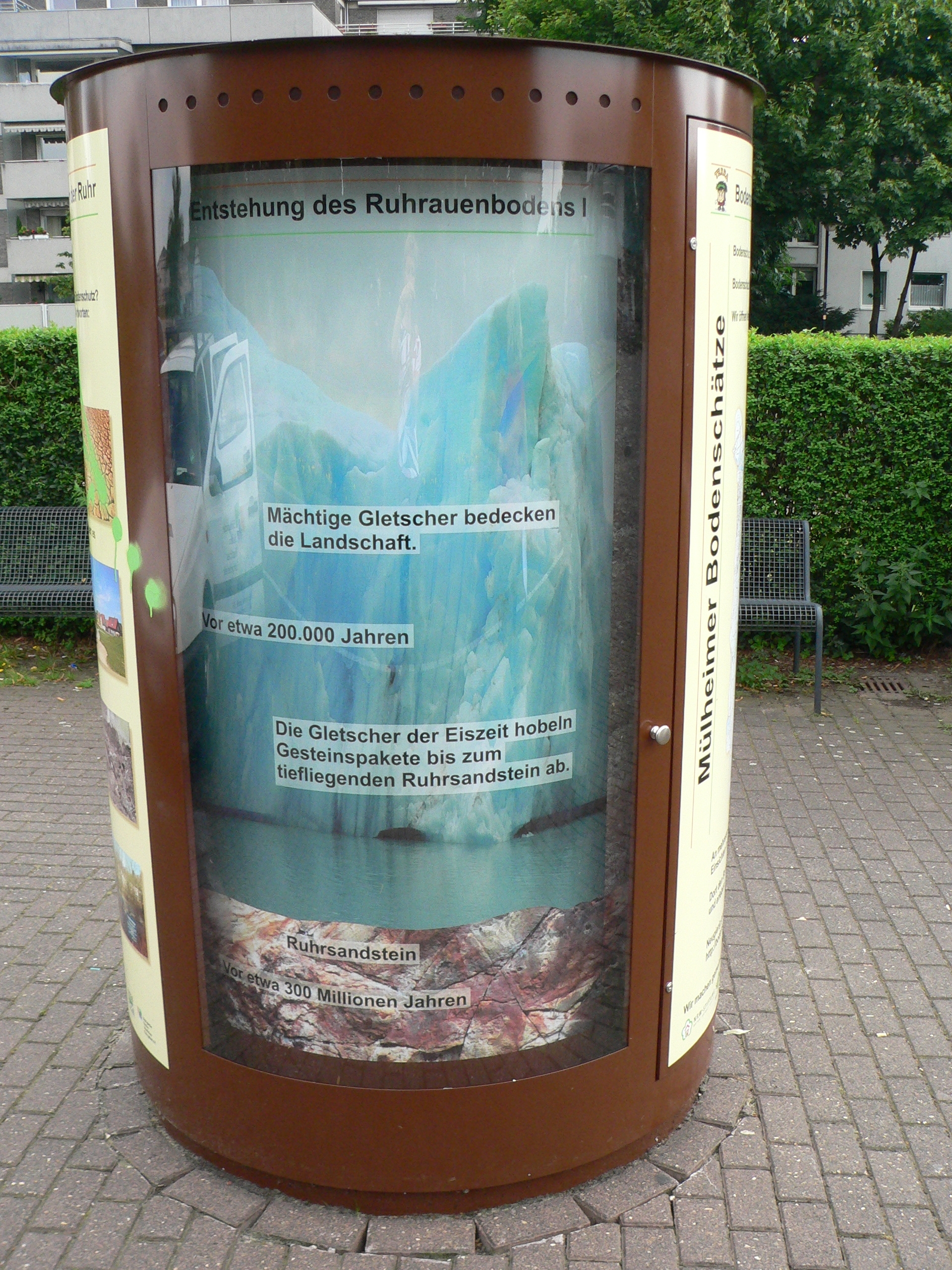 Der lange Bodenpfad führt durch das Ruhrtal zwischen Mülheim und Essen und über die Ruhrhöhen. Wer den ganzen Pfad erkunden möchte, dem wird wegen der erheblichen Länge empfohlen, sich ein Fahrrad auszuleihen. Allerdings ist es auch möglich, Teile des Pfades zu Fuß zu entdecken. Hierzu findet man im Internet eine Reihe empfohlener kleinere Entdeckerrouten.