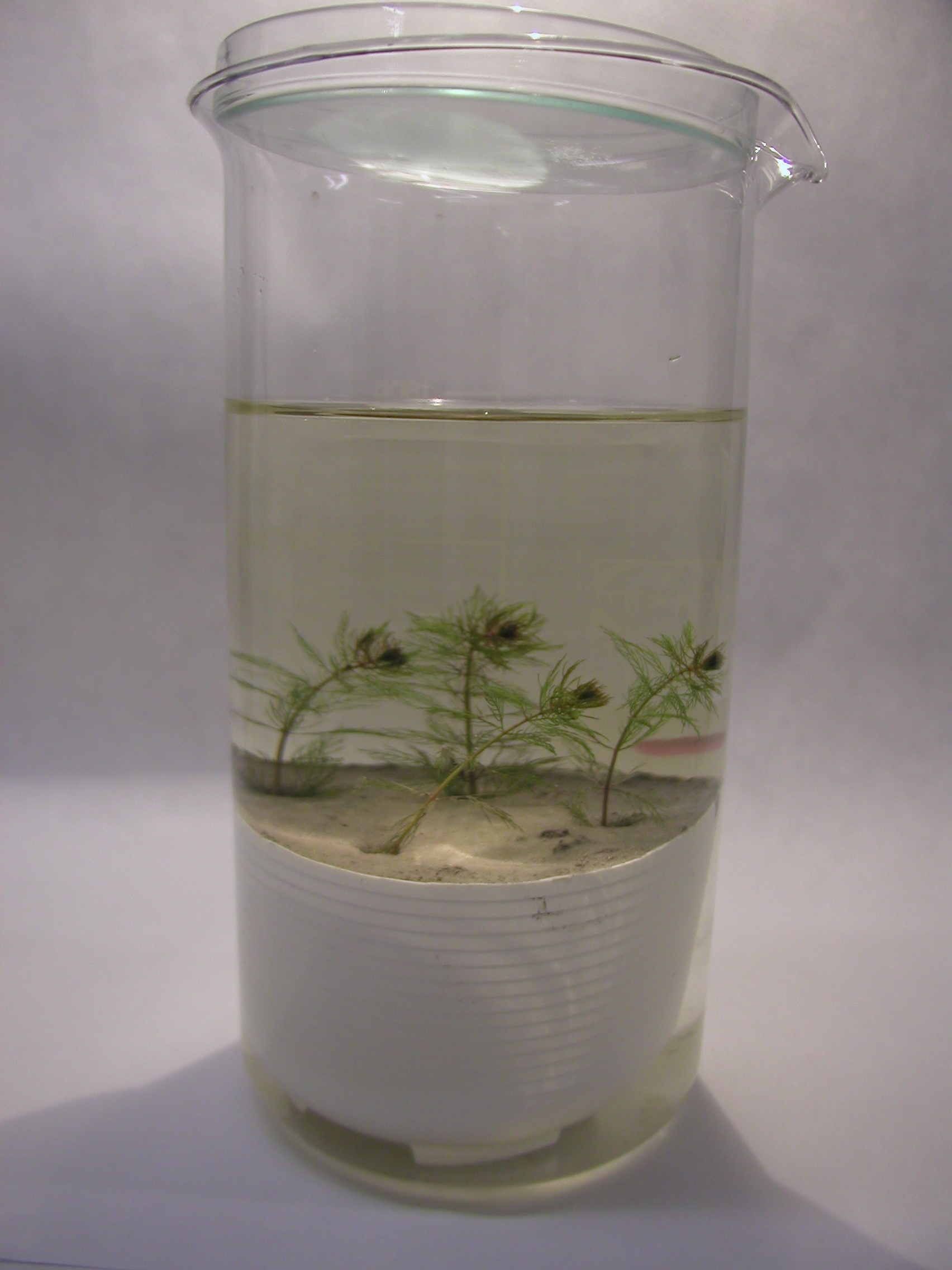 Neben der Entwicklung eines Einphasentestsystems mit Myriophyllum spicatum beteiligte sich das Ökotoxikologielabor des ⁠UBAs⁠ auch an der Entwicklung eines Zweiphasentestsystems mit den beiden Tausendblattarten M. spicatum und M. aquaticum sowie einem künstlichen Sediment.
