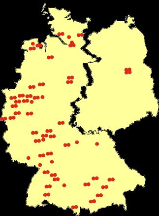 Erhebungsorte der Umweltstudie zur Gesundheit (ehem. Umwelt-Survey) 1985/86 als Punkte auf der Deutschlandkarte Erwachsene aus 100 Städten und Gemeinden wurden zur Umweltstudie von 1985 bis 1986 eingeladen