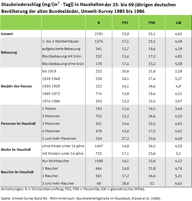 Umwelt-Survey, Band IIIa: Wohn-Innenraum. Spurenelementgehalte im Hausstaub, 2/91