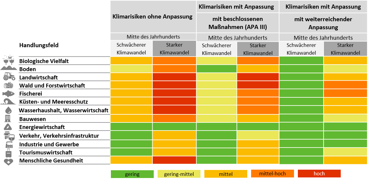3. Es bestehen in Deutschland (noch) viele Anpassungsoptionen. Mit dem Fortschreiten des Klimawandels werden vermehrt weitere, teils tiefgreifende Anpassungen notwendig. Manche Klimarisiken lassen sich schon jetzt ausschließlich durch intensiven Klimaschutz eindämmen.