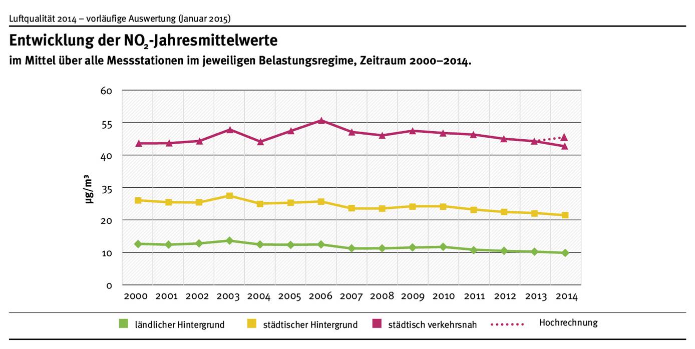 Luftqualität 2014: Stickstoffdioxid wird Schadstoff Nummer eins