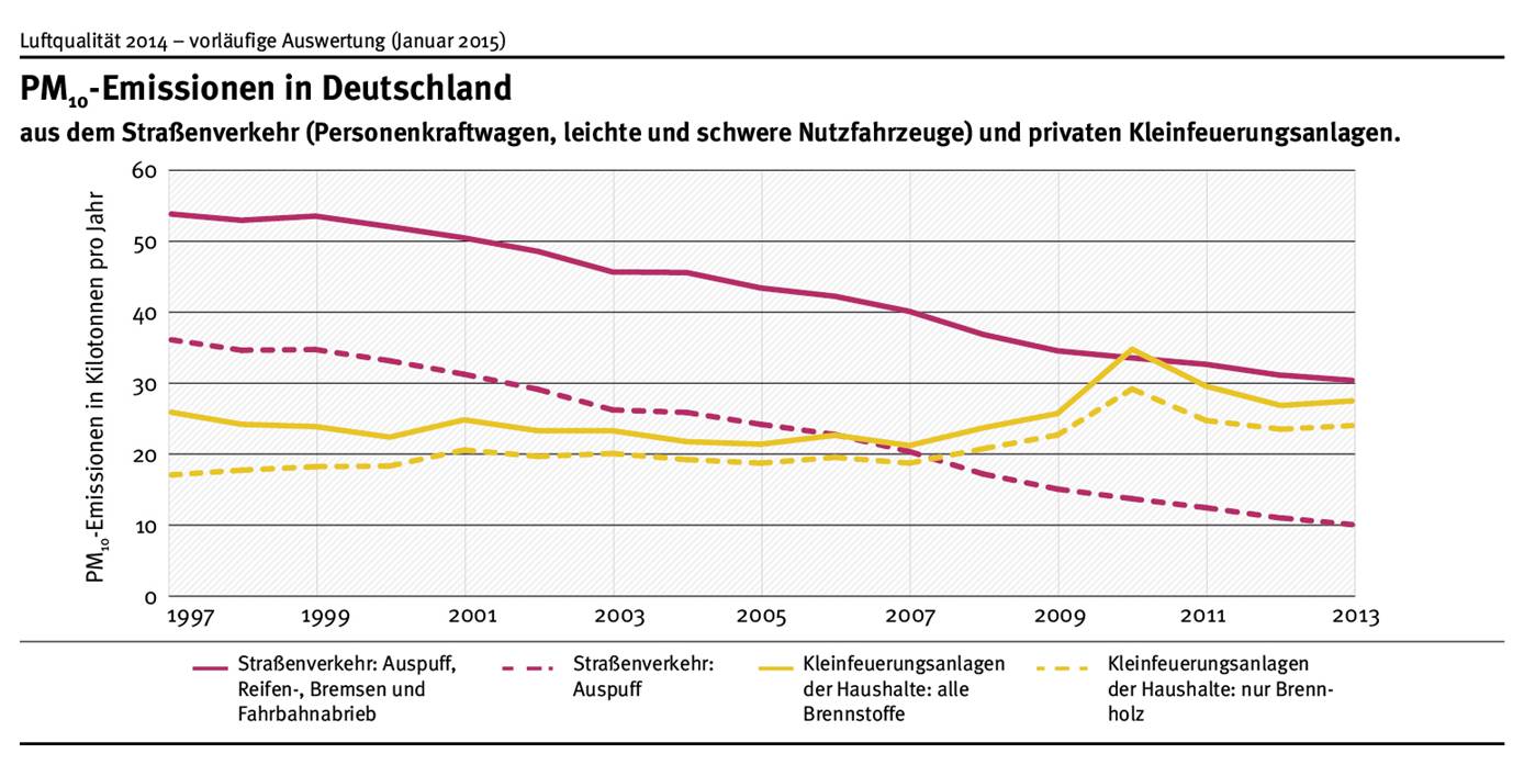 Holzheizungen verursachen örtlich mehr Feinstaub als der Straßenverkehr