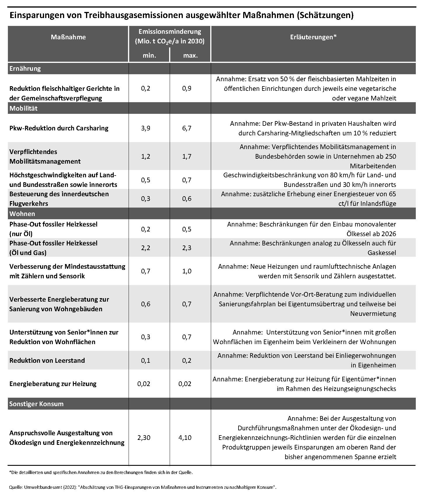 - Abschätzung von THG-Einsparungen von Maßnahmen und Instrumenten zu nachhaltigem Konsum