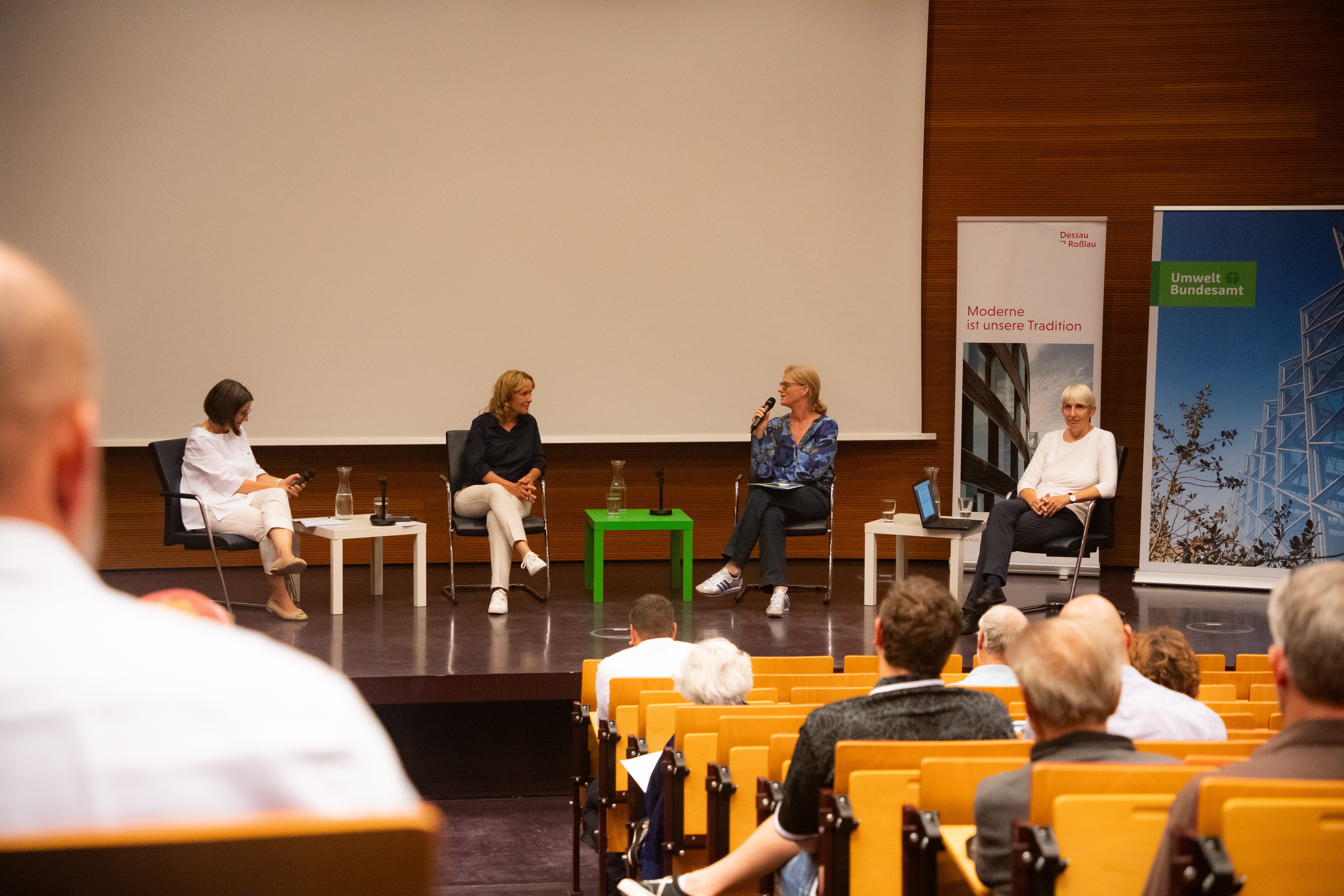 Über 70 Bürger*innen und Engagierte aus der Zivilgesellschaft, Stadtverwaltung, Politik, Wirtschaft, Kultur und Bildung nahmen am Auftakt des StadtLabors DE-RSL im UBA teil. In ihren Vorträgen gaben die damalige Umweltministerin Steffi Lemke, UBA-Vizepräsidentin Lilian Busse und Jacqueline Lohde, Bürgermeisterin und Beigeordnete für Bauen und Stadtgrün der Stadt Dessau-Roßlau, wichtige Impulse für die Stärkung und Wertschätzung des Engagements. In Arbeitsgruppen diskutierten die Teilnehmenden die Potenziale, Herausforderungen und Bedarfe des Engagements in Dessau-Roßlau.