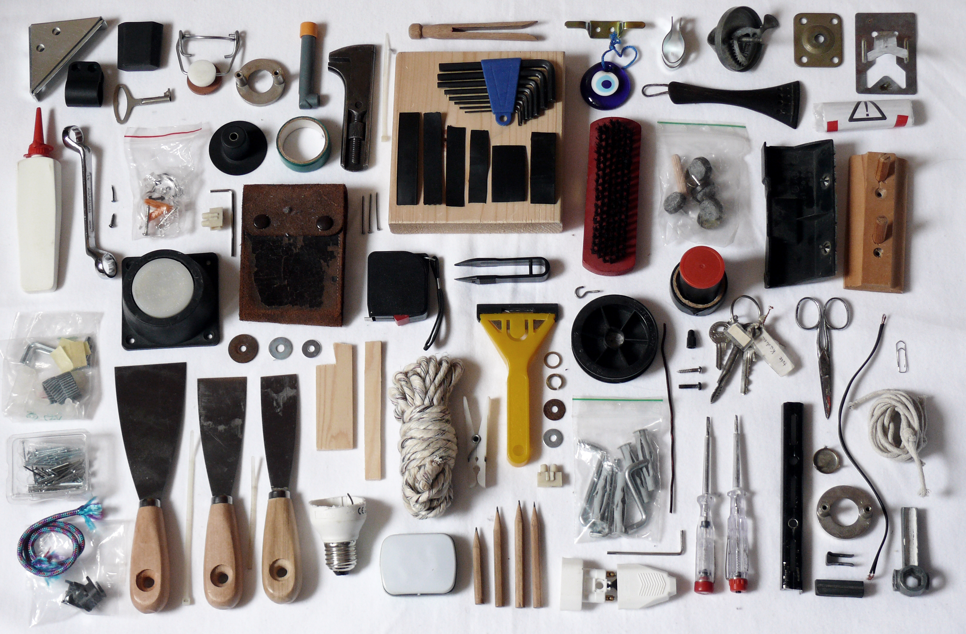 ganz viele verschiedene auf einer Fläche angeordnete Werkzeuge