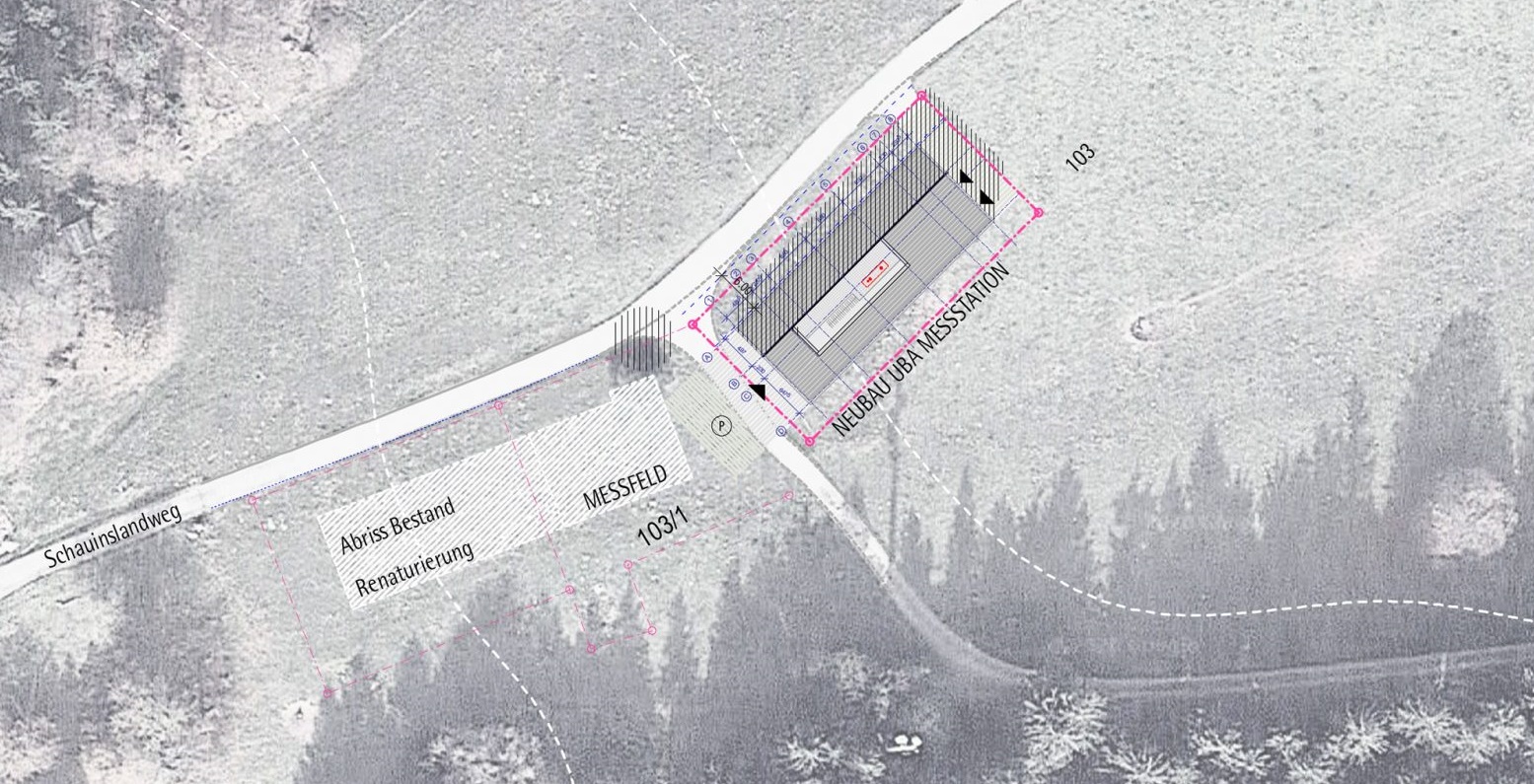 Die Luft-Messstation des UBA auf dem Berg Schauinsland, bei Freiburg (Baden-Württemberg), erhält ein neues Holzgebäude. In dem Gebäude werden Labor- und Messräume sowie Büro- und Funktionsräume untergebracht. Im Außenbereich wird dazugehörend das Messfeld neu installiert. Die Station dient der Beobachtung und Überwachung der Luft im Rahmen nationaler und internationaler Luftreinhalteabkommen.