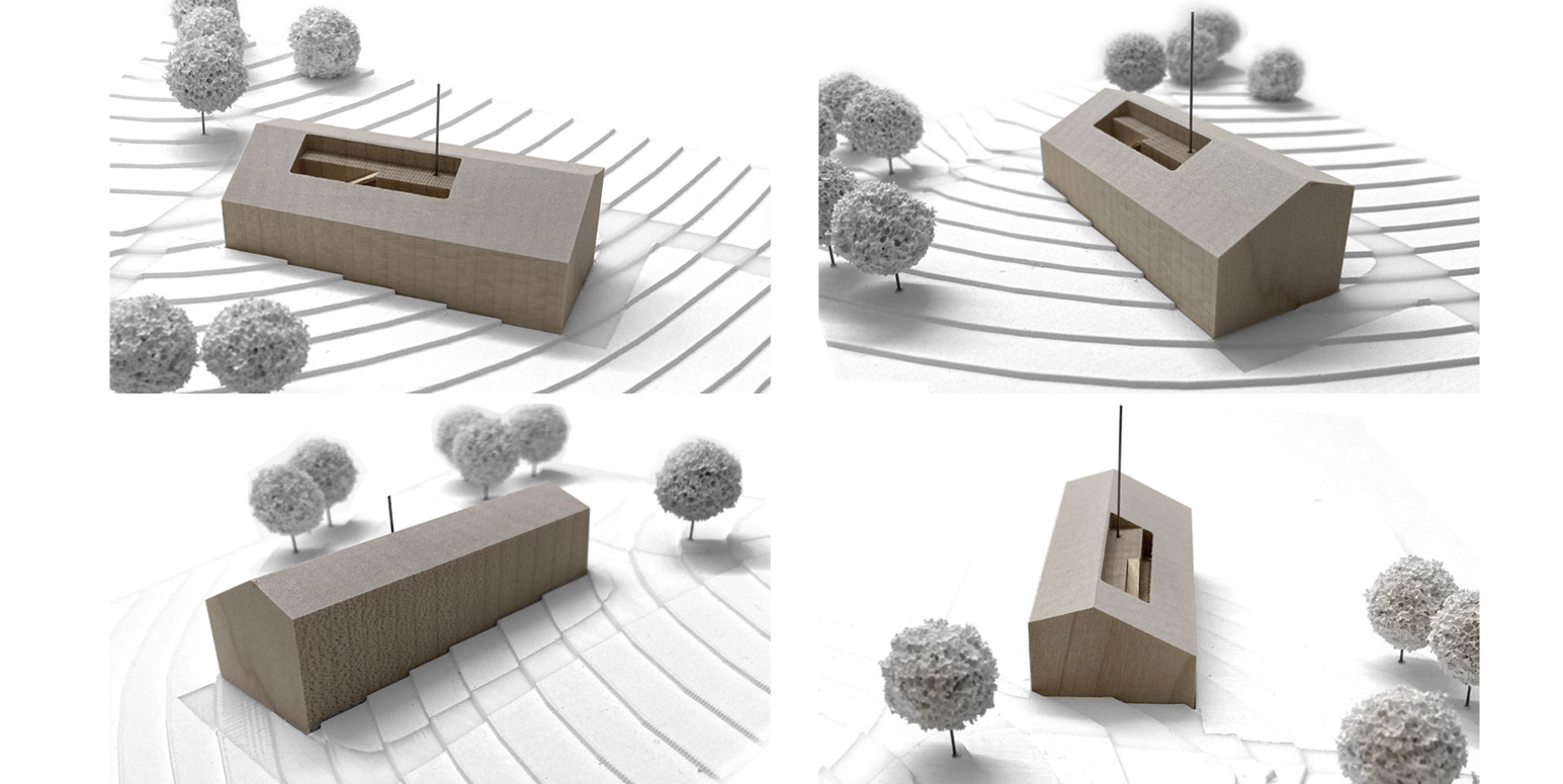 Der Neubau wird nun ein unterkellertes, zweigeschossiges Gebäude mit einer Nutzfläche von rund 500 m² sein. Der Baukörper erhält ein Satteldach mit unterschiedlichen Dachneigungen. Diese asymmetrische Bauweise erlaubt im Obergeschoss die Unterbringung von Büroräumen neben einem Dacheinschnitt welcher den direkten Zugang zu der integrierten Messplattform ermöglicht.