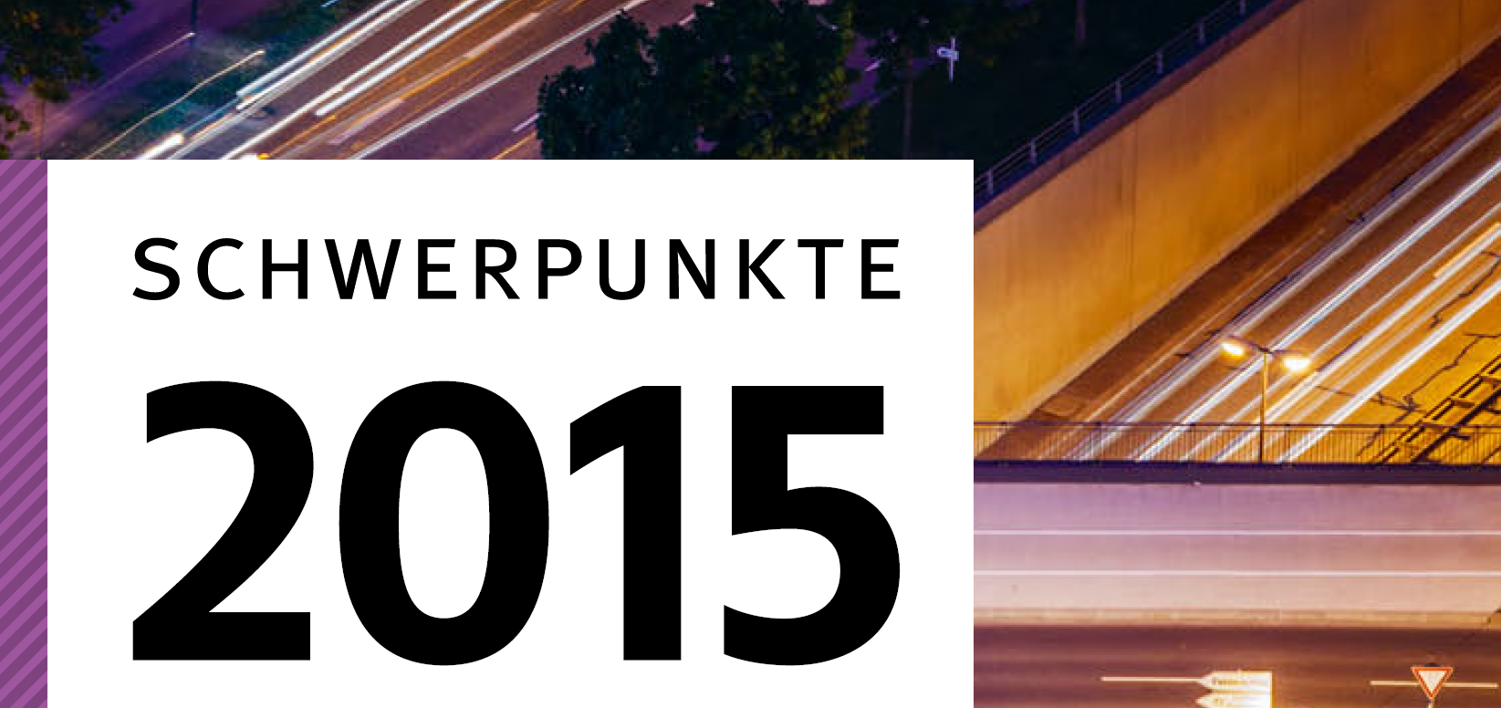 Ausschnitt des Covers der Broschüre Schwerpunkte 2015 mit einem Hintergrundbild einer nächtlichen Straße