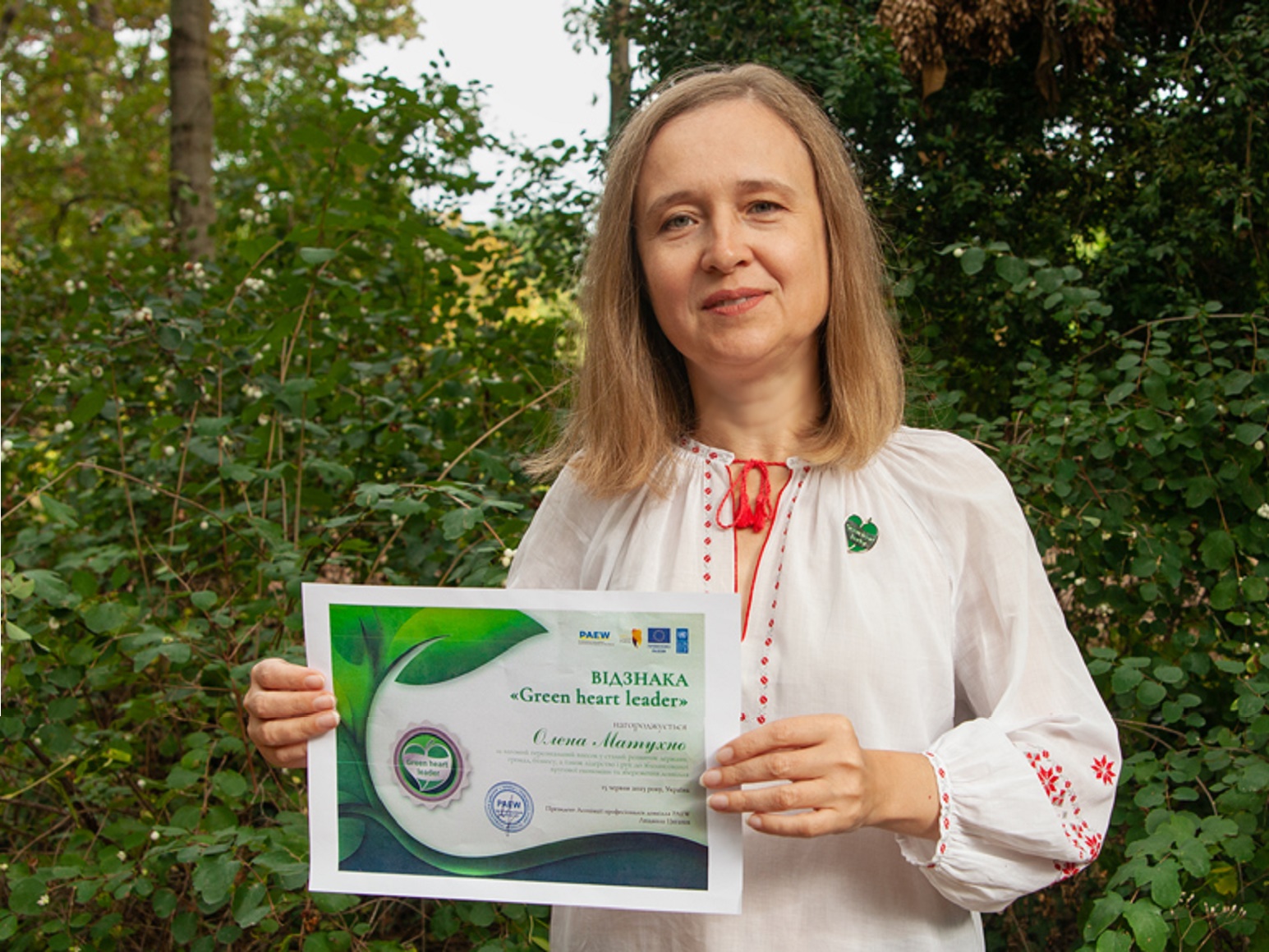 Dr. Olena Matukhno wurde von der Abteilung für Umweltpolitik des Stadtrats von Dnipro für die „Green Heart Leader“-Ehrenauszeichnung aufgrund ihres Engagements in der „grünen Bewegung“ in der Ukraine nominiert. Sie ist langjähriges ehrenamtliches Mitglied des wissenschaftlich-technischen Rats der Abteilung für Umweltpolitik. Darüber hinaus berät sie Unternehmen bei der Verbesserung ihrer Umweltauswirkungen, der Umsetzung der besten verfügbaren Technologien sowie der Überwachung und Berichtserstattung von Treibhausgasemissionen.