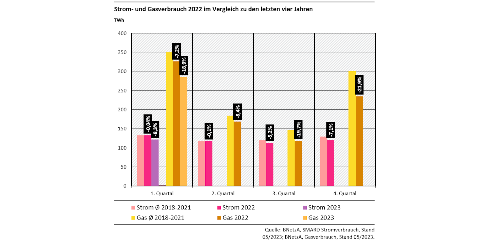 Strom- und Gasverbrauch ab der zweiten Jahreshälfte 2022 gesunken