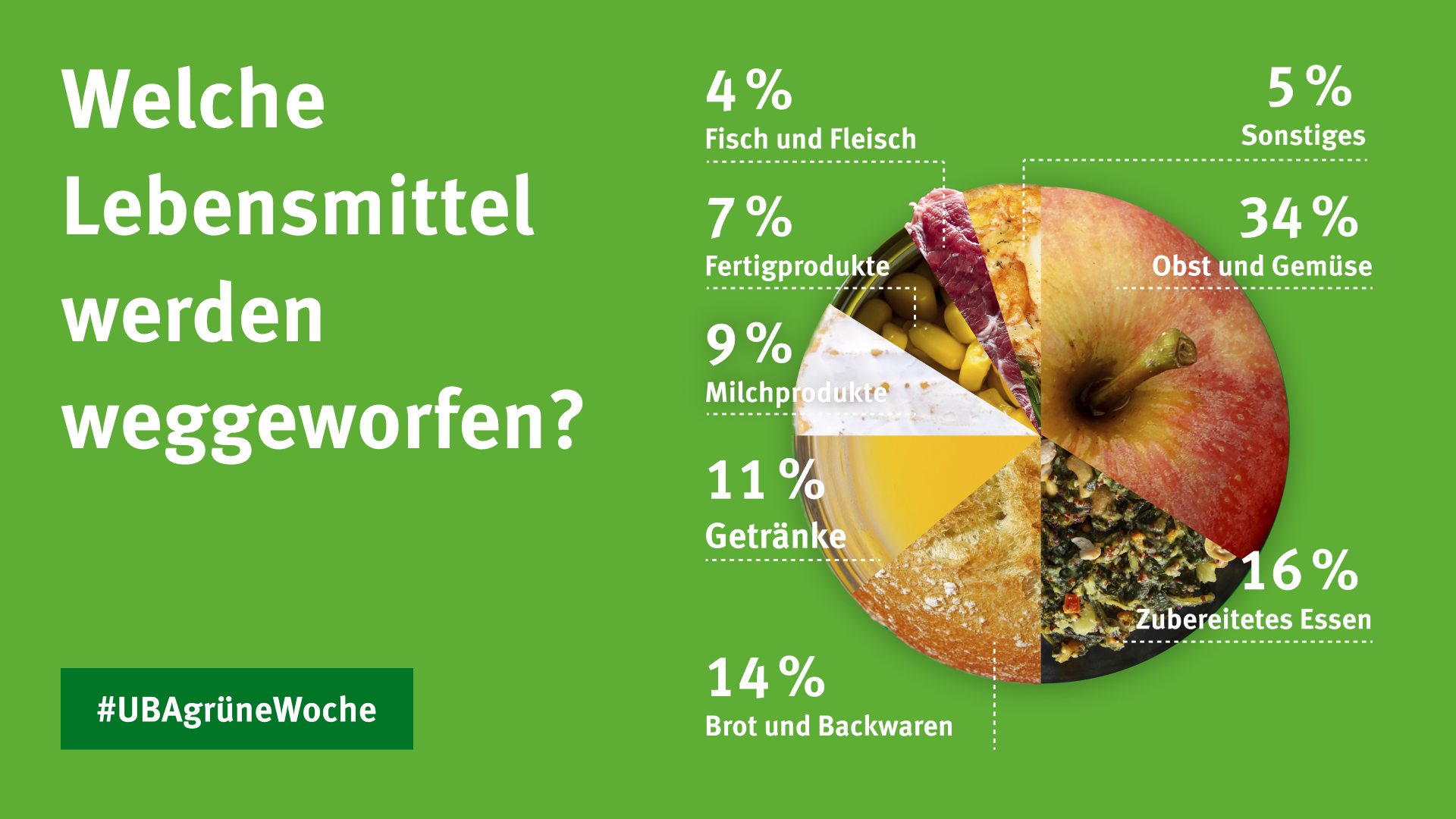 Eine grafische Übersicht von Lebensmittelabfällen in Prozentangaben #UBAgrüneWoche: Lebensmittelabfälle