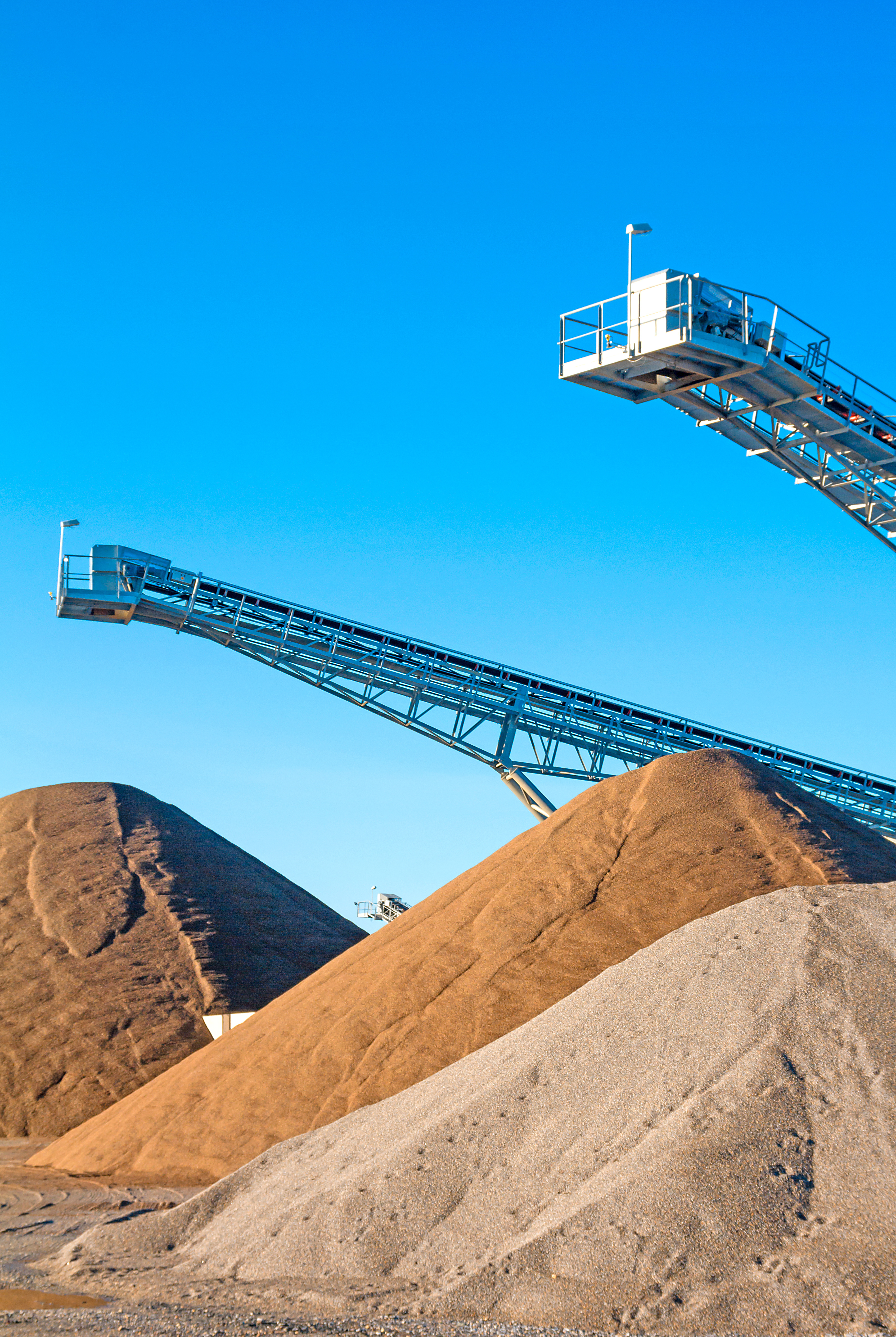 Drei Halden mit verschiednem Schüttgut und Förderbänder