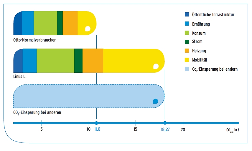 Am deutlichsten empfinde ich das Defizit bei der Beispielperson 2 (Peter B.). Dort heißt es zum Schluss: "Von Kompensationszahlungen hält Peter B. jedoch nichts." Hier hätte man m.E. doch zumindest schreiben müssen, dass Peter B. zwar viel an Vermeidung erreicht, er aber dennoch rund 50% unter seinen Möglichkeiten bleibt und weiterhin (zwar vermindert, aber doch) mit gut 6 t CO2-Emission pro Jahr zur Erhöhung der CO2-Konzentration beiträgt. Die Aussage "'Selber machen', lautet seine Devise" vernebelt die Tatsache, dass er für seine "Rest"emissionen verantwortlich bleibt!