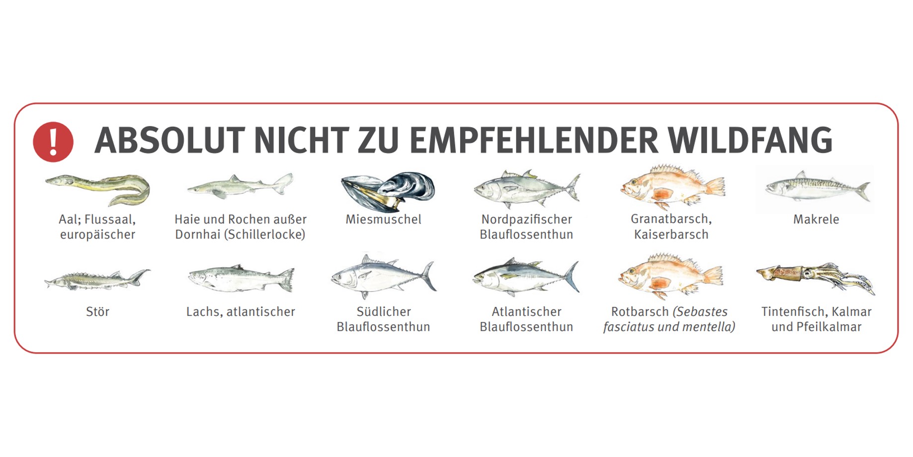 Auszug aus dem Fischratgeber der Verbraucherzentrale zu nicht zu empfehlenden Wildfang-Arten Auszug aus dem Fischratgeber der Verbraucherzentrale