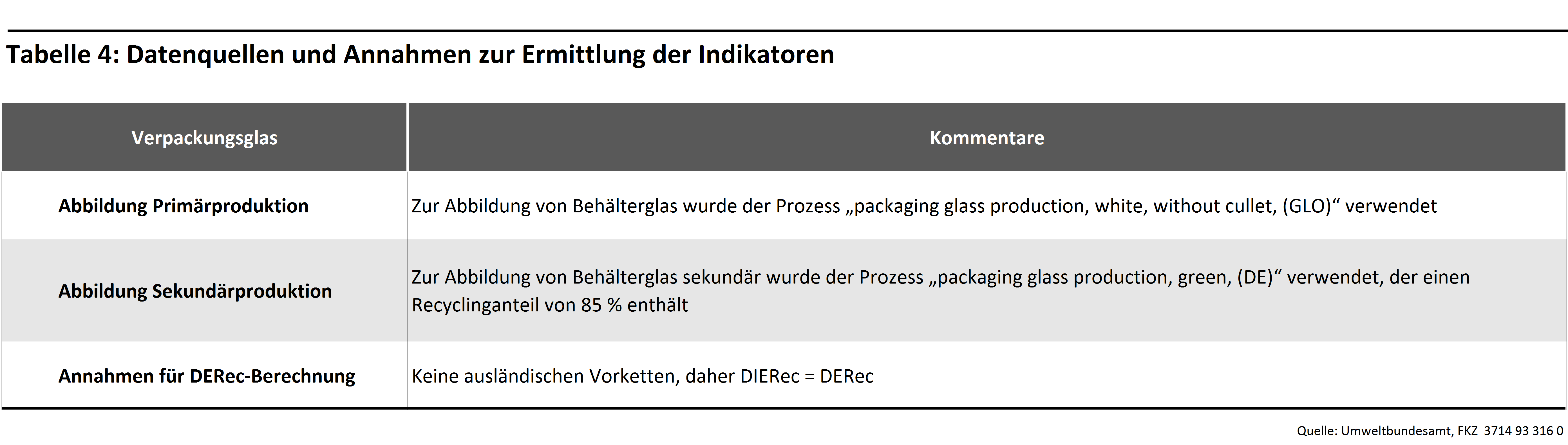 Verpackungsglas Tabelle 4: Datenquellen Verpackungsglas Tabelle 4: Datenquellen