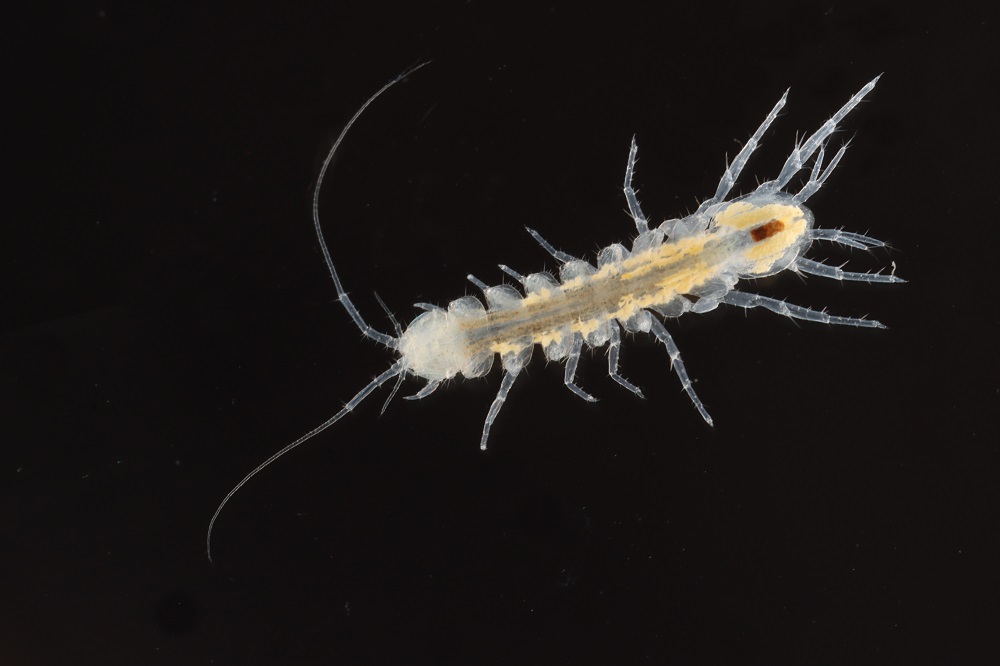 In Germany alone, 15 different species of these blind and colourless animals have been identified. Depending on the species, they are between a few millimeters and up to three centimeters in size. They feed mainly on dead microorganisms, so-called detritus, but also on smaller animals and move around lying on their sides. To draw attention to the sensitive habitats of caves and groundwater with their great diversity of species, the groundwater flea crab was named "Cave Animal of the Year 2009" by the Association of German Cave and Karst Researchers. Of the more than 170 European freshwater isopod species, more than 60 percent live exclusively in groundwater. One widespread species is the so-called cave water isopod (Proasellus cavaticus). The animals, which are about 8 millimeters in size, are found throughout Central Europe and, like many other groundwater creatures, feed on dead plants. Their biggest natural enemies are the cave fleas of the genus Niphargus described above. The organisms adapted to the special conditions include groundwater animals as well as various microorganisms such as bacteria, aquatic fungi and protozoa, which make up the main part of the biomass.