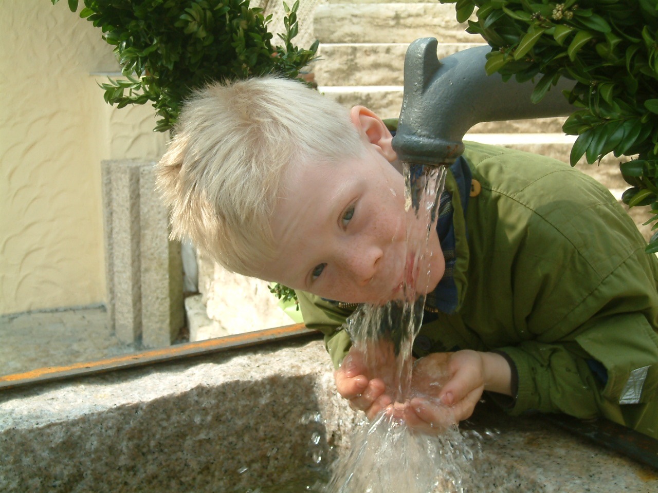 A boy drinking at the tap Groundwater is an important source of drinking water